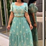 É todo confeccionado em Alfaiataria Egípcia com bordado, manga finalizada com elastex, elastex nas costa, saia com forro!