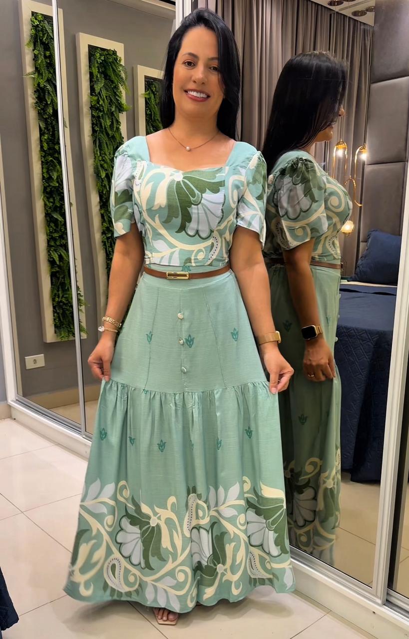 Conjunto Blusa e Saia Perfeito para ocasiões especiais.