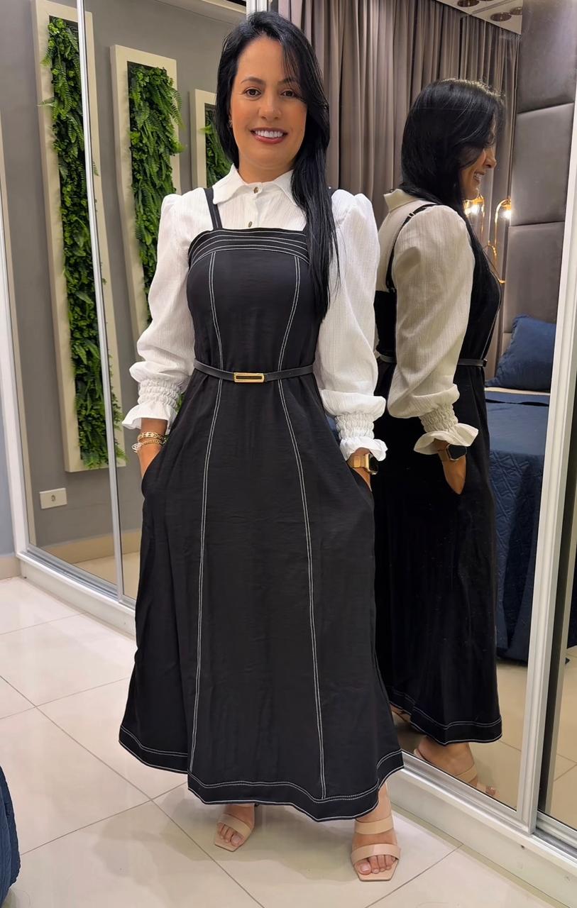 É toda confeccionada em Alfaiataria Egípcia, manga Alça, com borjo, elastex nas costas!