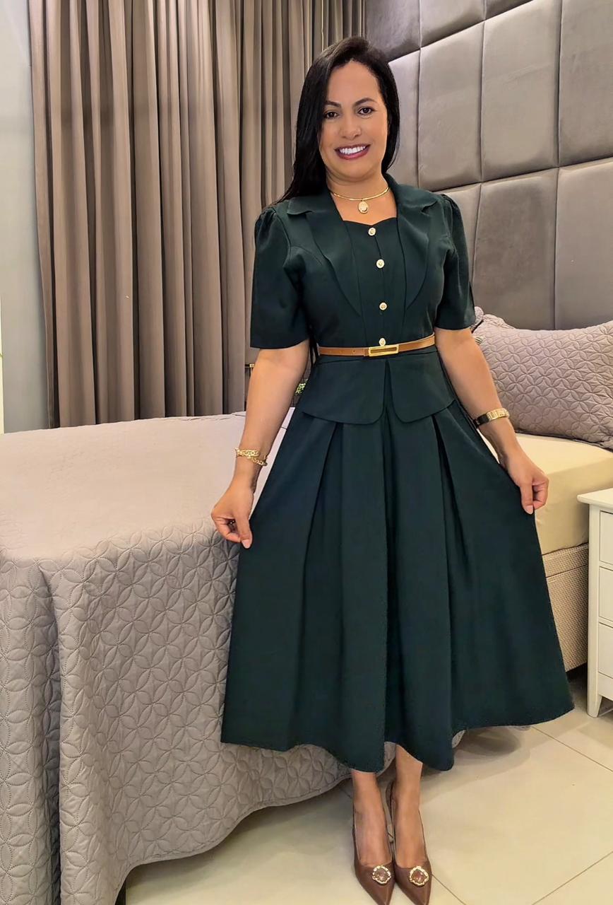 R$ 119,90O Vestido mais lindo da vida.. É todo confeccionado em Crepe Duna, manga finalizada com elástico, botões funcionais, elastex nas costas! Informações Adicionais: Tamanhos: P(38) M(40) […]