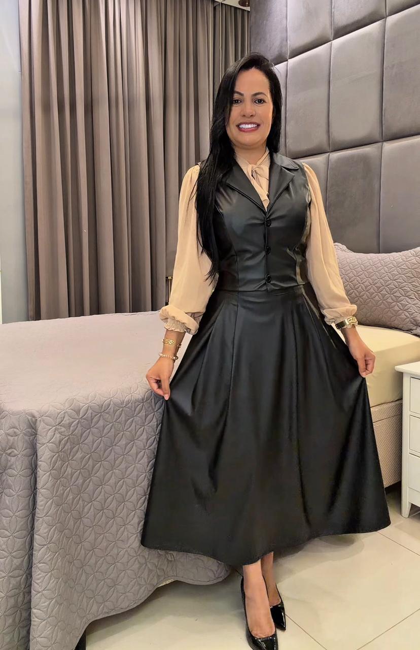 Conjunto Saia e Colete Perfeito para ocasiões especiais.