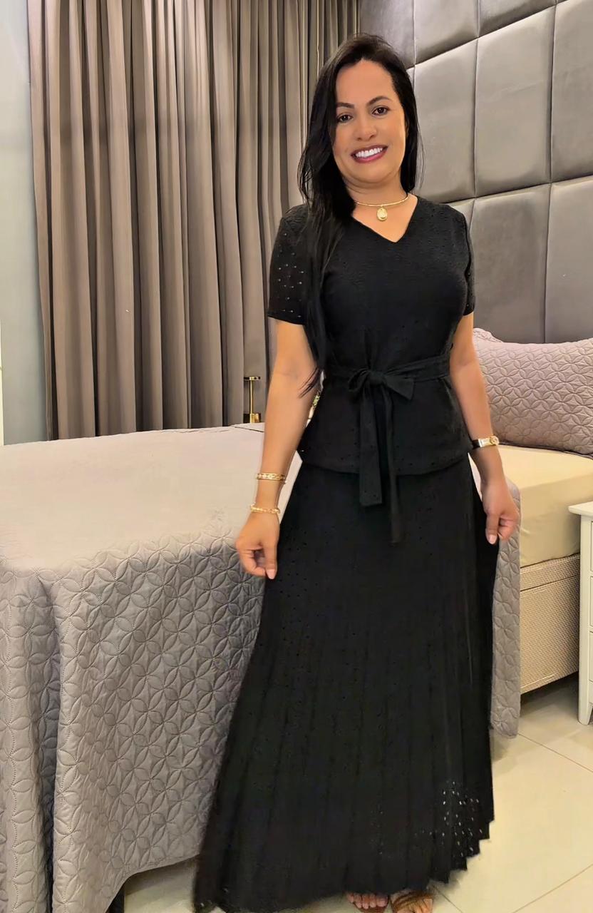 Conjunto 3 peças Saia e Blusa e Cinto Perfeito para ocasiões especiais.