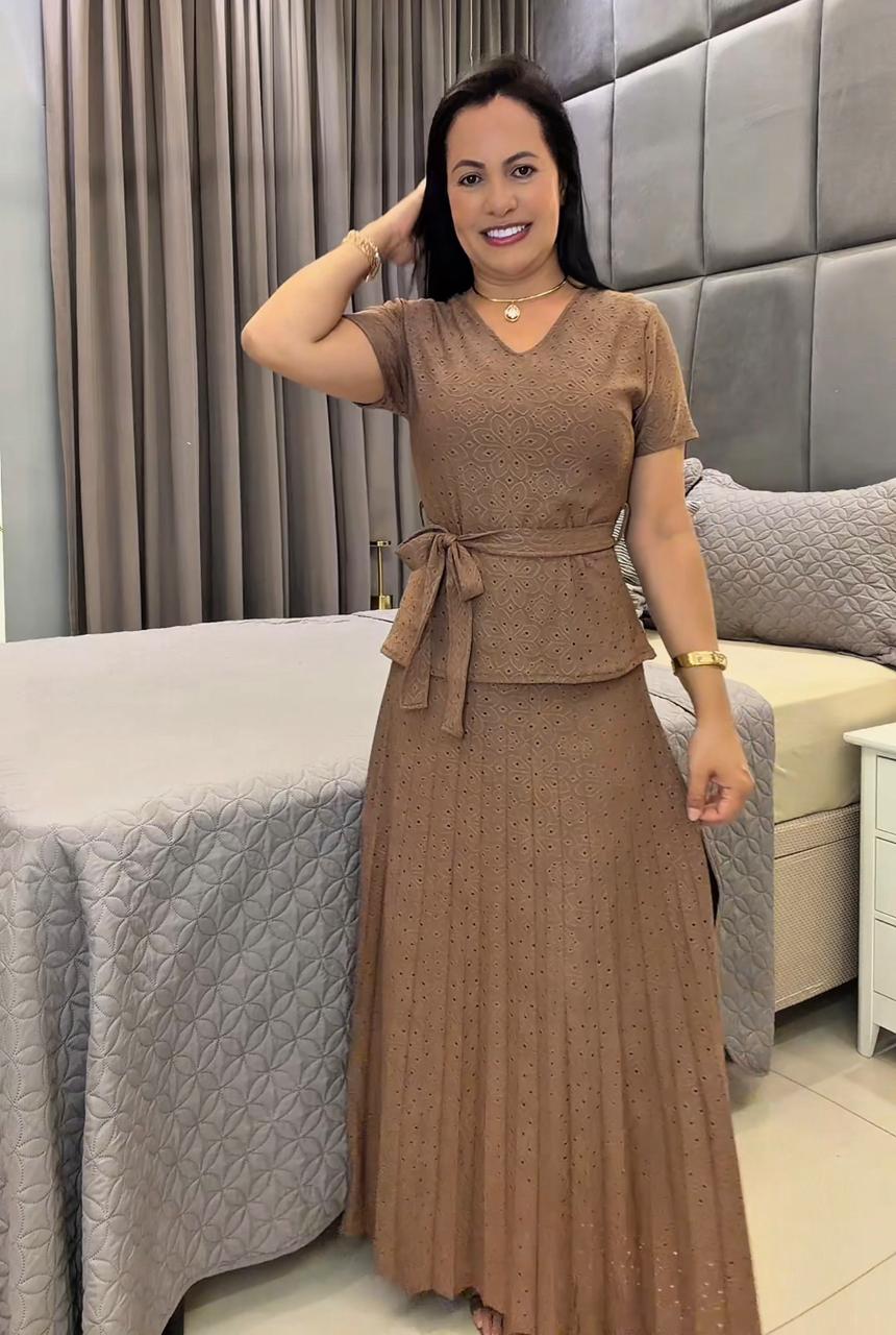 Conjunto 3 peças Saia e Blusa e Cinto Perfeito para ocasiões especiais.