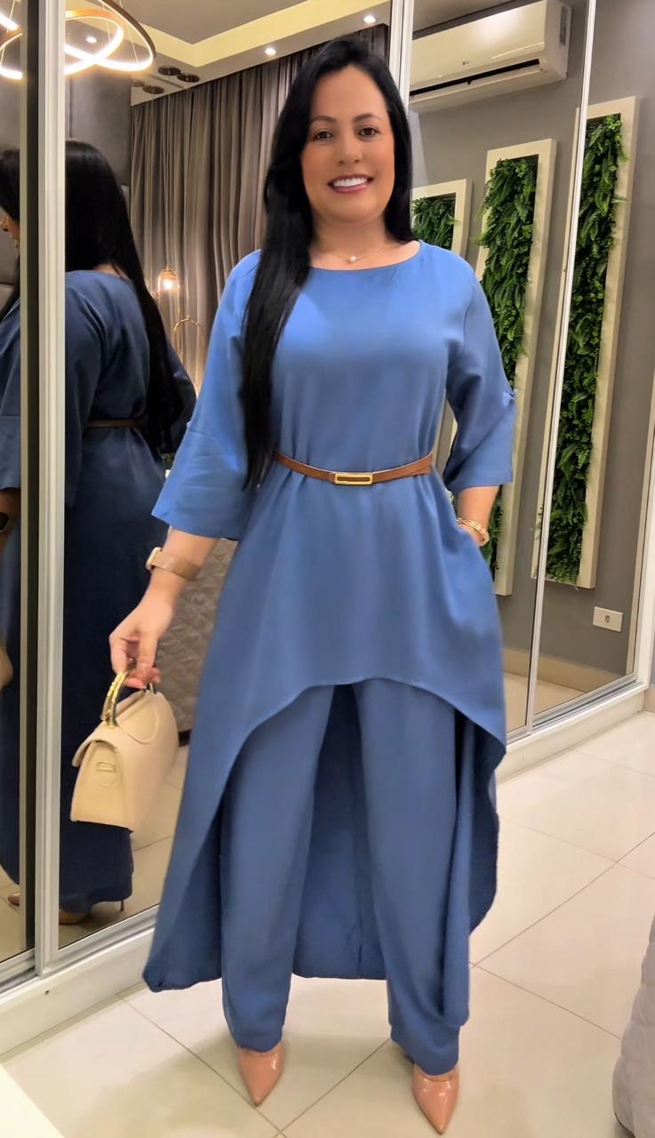 O Conjunto é versátil e se adapta a diversas ocasiões, desde eventos formais até encontros casuais, sempre com um ar de sofisticação.