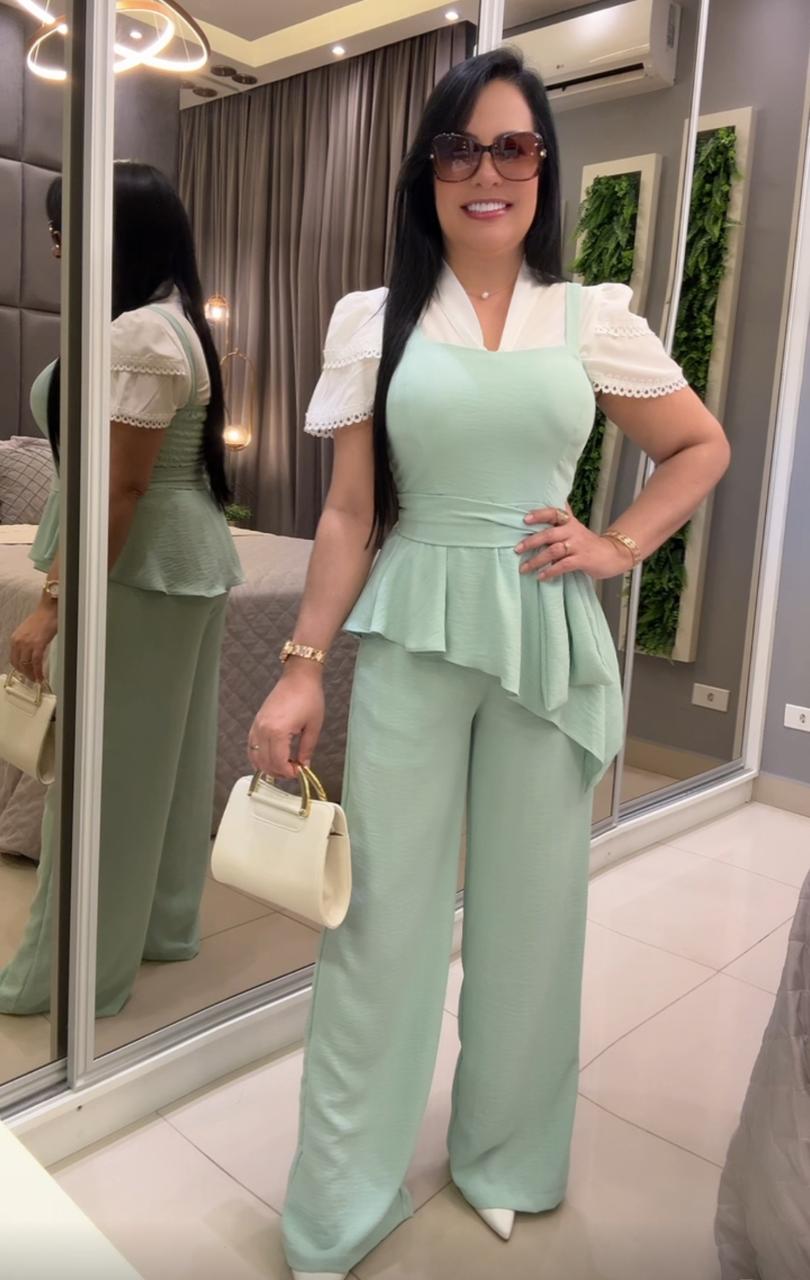 O Conjunto é versátil e se adapta a diversas ocasiões, desde eventos formais até encontros casuais, sempre com um ar de sofisticação.