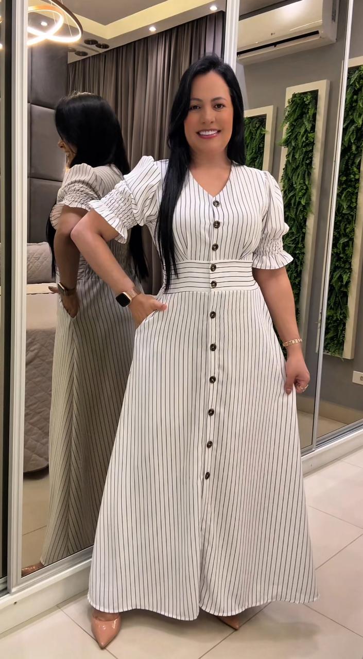 R$ 179,90O Vestido Longo mais lindo da vida.. É todo confeccionado em Alfaiataria Egípcia, decote trabalhado, manga godê, elastex nas costas, botões funcionais , saia recorte transpassado […]